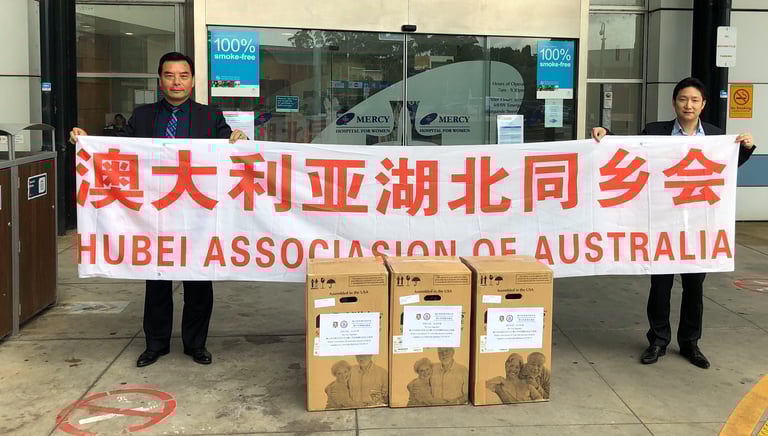 澳大利亚湖北同乡会向莫纳什政府、维州皇家太平绅士荣誉协会和澳洲海军退伍军人博物馆捐赠医用制氧机和口罩